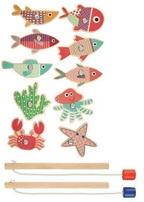 Wie kent dit spel niet: het geweldige visspel. In een mooie houten uitvoering met 2 hengels, 10 zeedieren en een vilten speelmat. Dit spel traint spelenderwijs de hand-oog coördinatie en het eerste begrip van nummers. Wordt geleverd in een mooie koker. Vanaf 24 maanden.